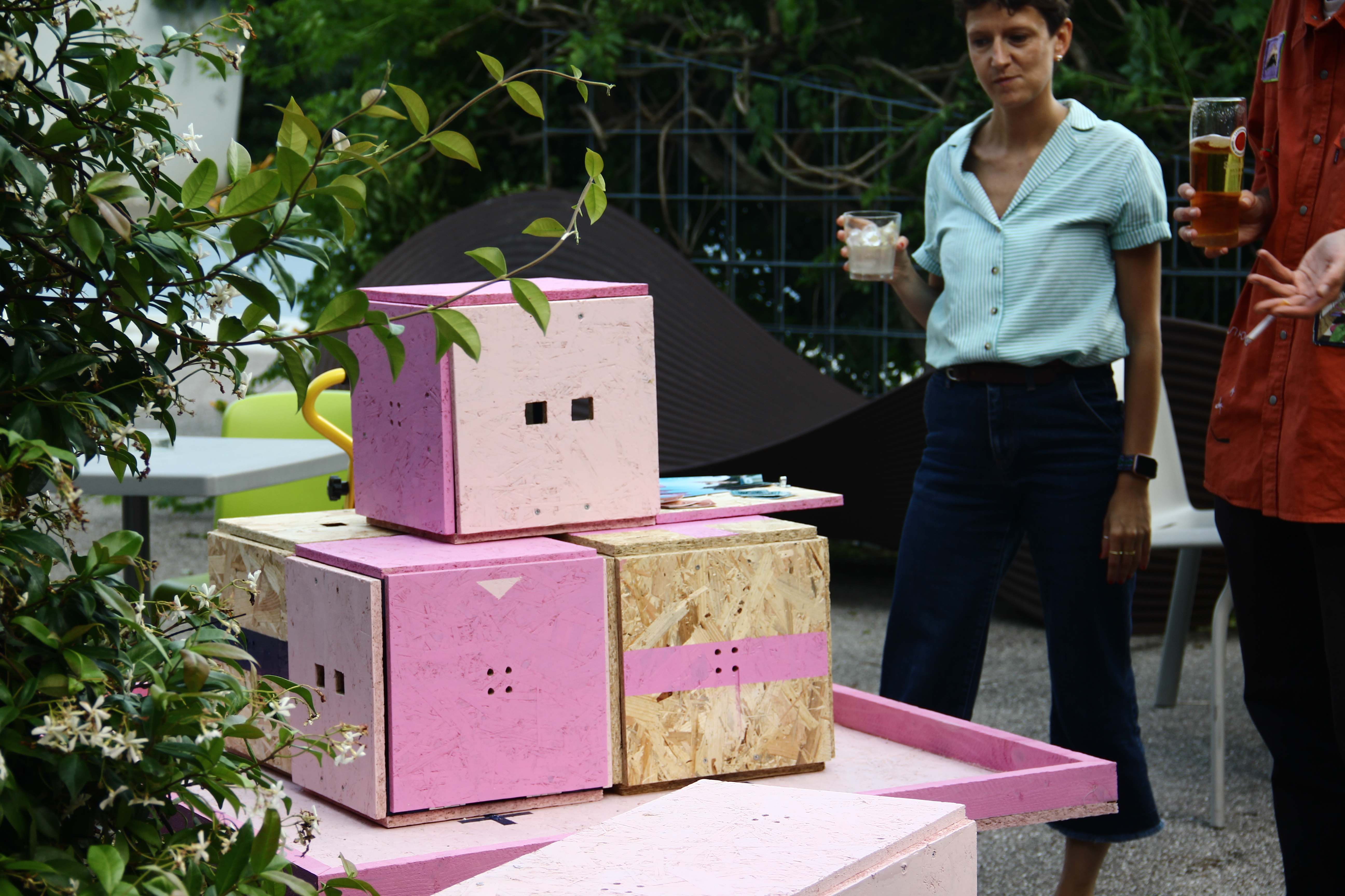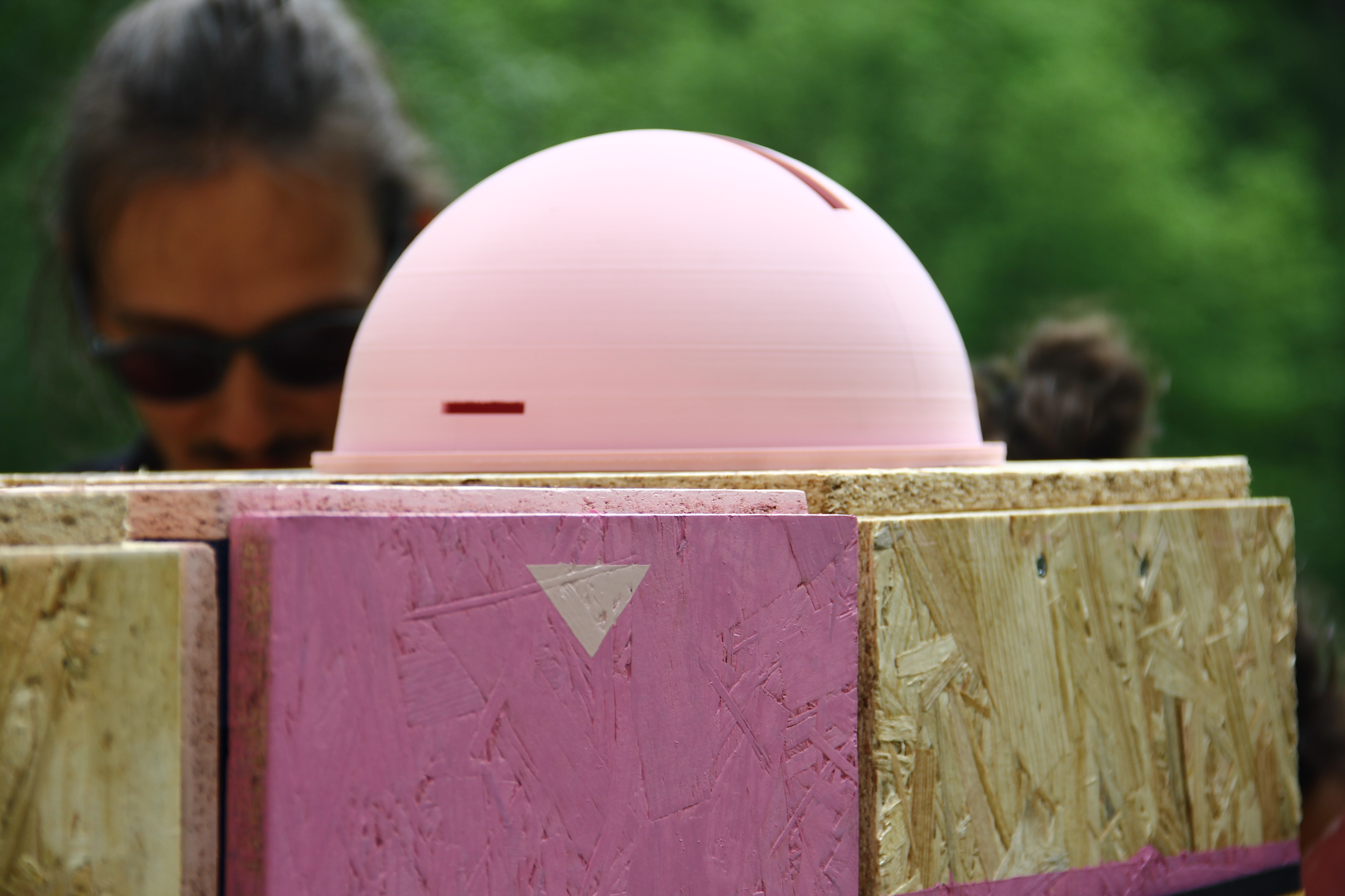 Ci è stato chiesto di immaginare un elemento riconoscibile, ma allo stesso tempo adattabile allo spazio. Per un collettivo che si occupa proprio di territorio, la necessità adattarcisi è questione imprescindibile. Per questo motivo abbiamo inteso la mobilità del pop up non solo in quanto trasporto durante un percorso, bensì anche come assemblaggio della stessa installazione.